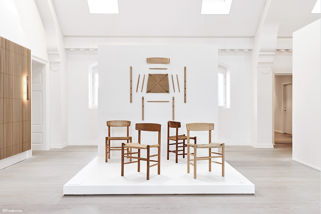 モーエンセンはFDBモブラーでもクリントの下で学んだデザイン方法論を実践し、庶民のための家具をデザインしていきます。1947年にはシェーカーチェア[ⅱ]をリ・デザインしたJ39を発表していますが、デンマークではフォルケストーレン(庶民の椅子)という愛称で呼ばれており、現在でも国民的な椅子として広く親しまれています。どのような空間に置いても馴染みやすく、静かに椅子としての役割を担うJ39は、日常の生活道具を目指したモーエンセンの思いが結実した作品といえるでしょう。