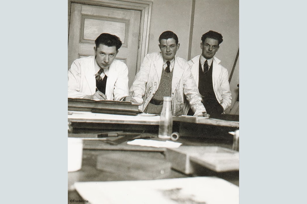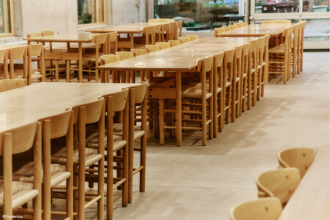 コペンハーゲンに身を置くことでデザインの必要性を感じたモーエンセンは、1936年に美術工芸学校に入学し、本格的に家具のデザインを学び始めます。美術工芸学校では、生涯を通じて交友を深めることになるハンス J. ウェグナーに出会いました。ともにユトランド半島出身である二人は意気投合し、互いに切磋琢磨しながら家具デザインについて学びます。当時の美術工芸学校は、コペンハーゲンの工芸博物館(現デザインミュージアムデンマーク)の一角にありましたが、博物館に収蔵されていたチェアコレクションは彼らにとって生きた教材となったに違いありません。