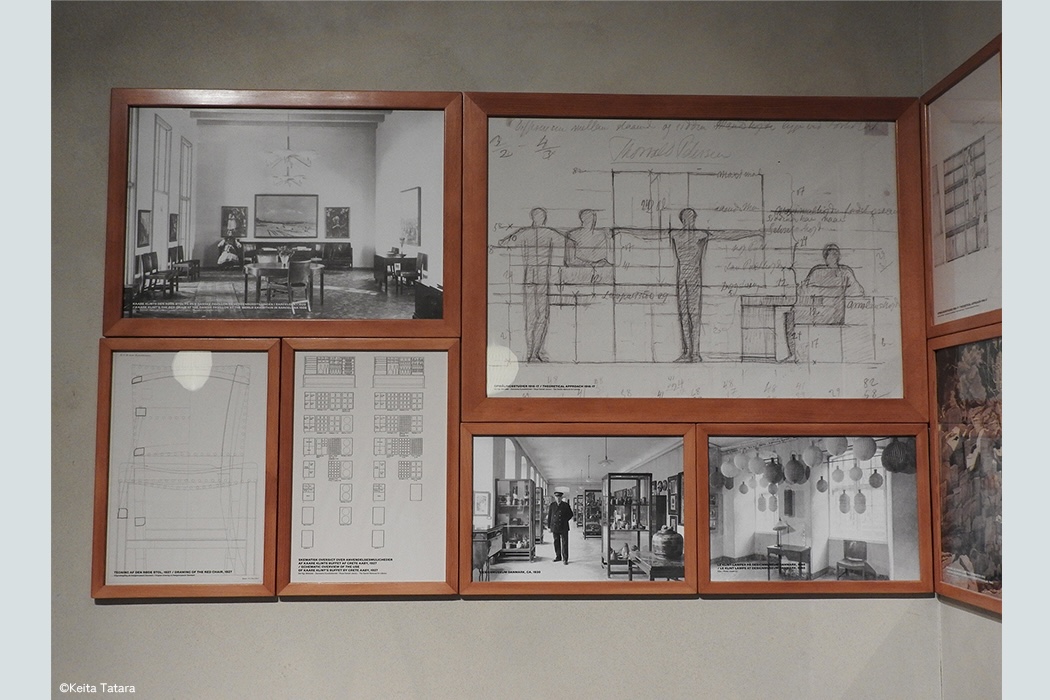イギリスの椅子の研究だけではなく、クリントは人体と家具の相関関係、および収納家具のモジュールなどについても研究しています。日本でも美しい比率として古来より用いられている1:1.414の白銀比がありますが、クリントはそこから導き出された数字をインチ規格で人体各部の寸法に割り付け、家具のデザインに応用しました。当時のデンマークではメートル法への移行が進んでいましたが、身体尺度から生みされたインチ規格の方が家具のデザインには適しているとし、王立芸術アカデミーにおいてもインチ規格を使い続けたそうです。