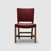 この椅子はコペンハーゲンの美術工芸博物館(現 デザインミュージアム・デンマーク)の講義室用にデザインされたもので、ルッド・ラスムッセン工房で作られました。赤く染められた山羊の革を張られたことから、レッドチェアと名付けられています。クリントはリ・デザインの手法を用いて、レッドチェア以外にもサファリチェアやチャーチチェア[i]など数多くの名作を残しました。